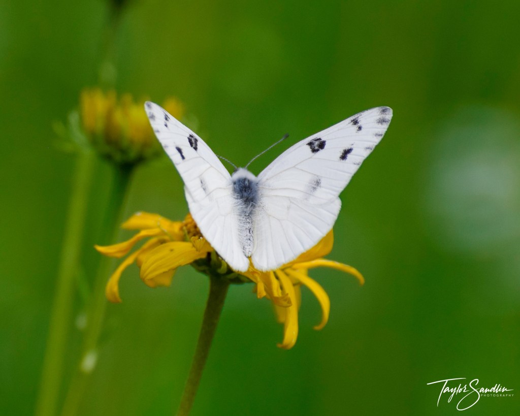 In my experience, Checkered Whites are a bit skittish and tend to be in flight more than settled upon a plant, although you can occasionally catch them feeding. As often as not, I have found them on the ground drawing water from moist dirt.