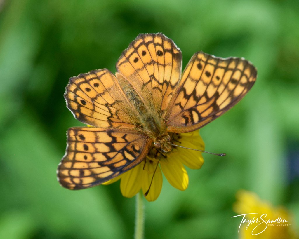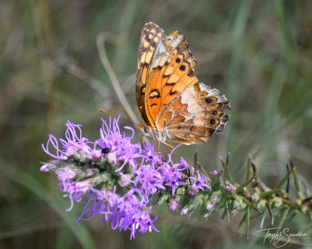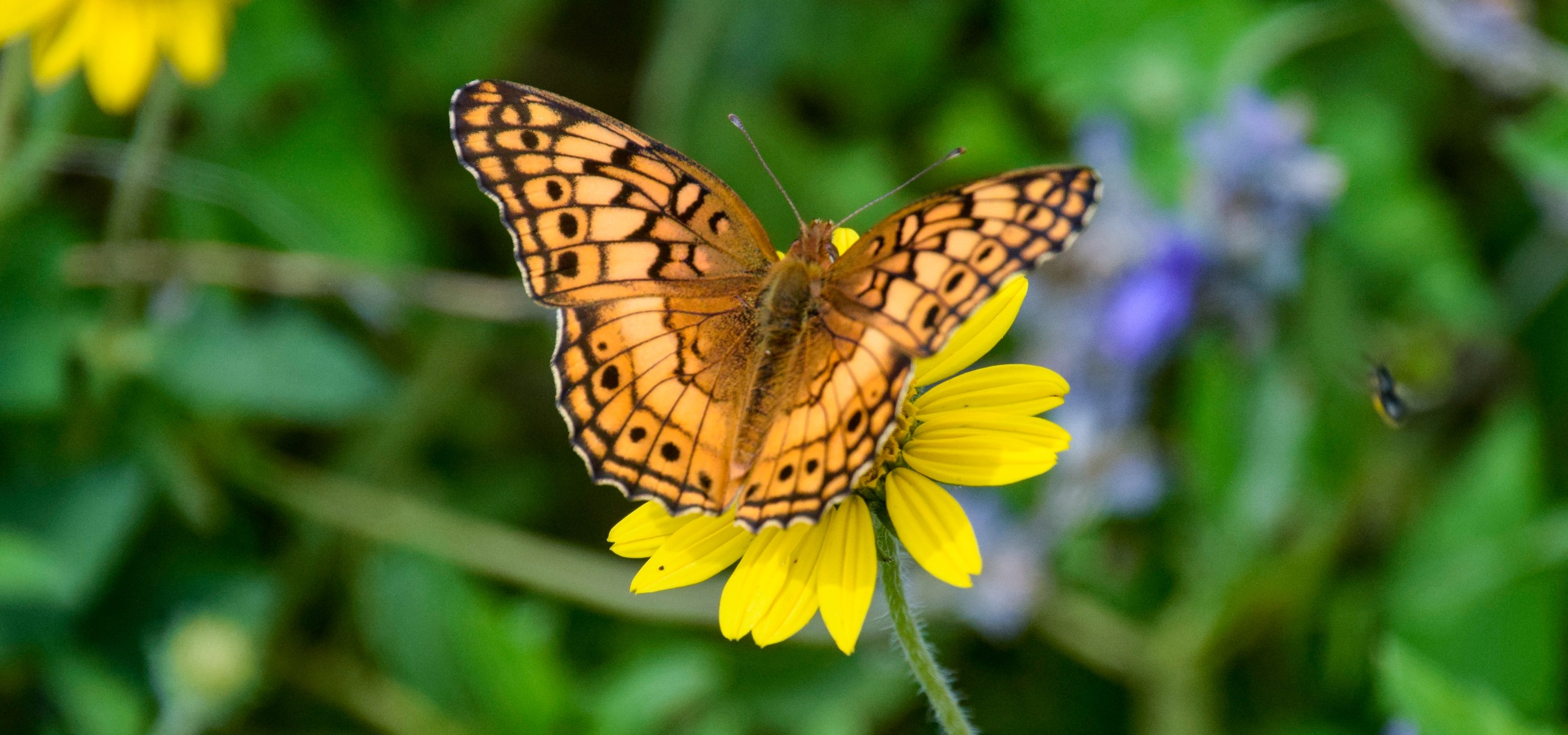 The Variegated Fritillary is a common sight when hiking throughout Texas. It prefers open habitat and can be found in prairies, brushland, and roadsides.