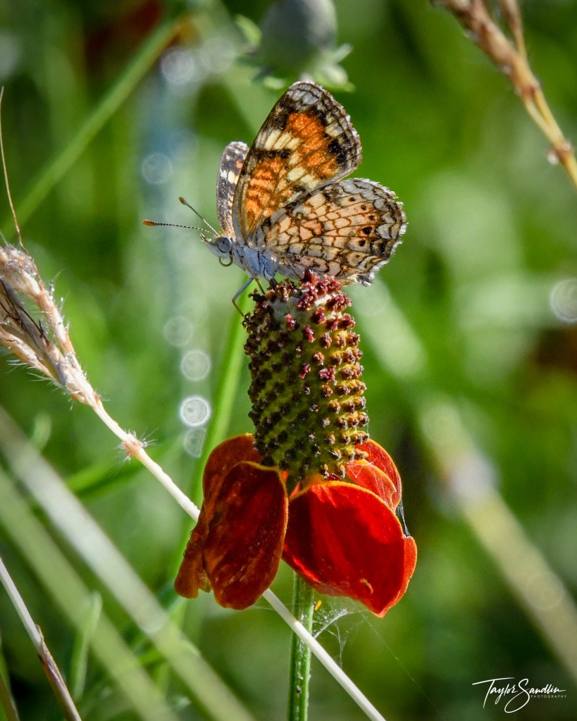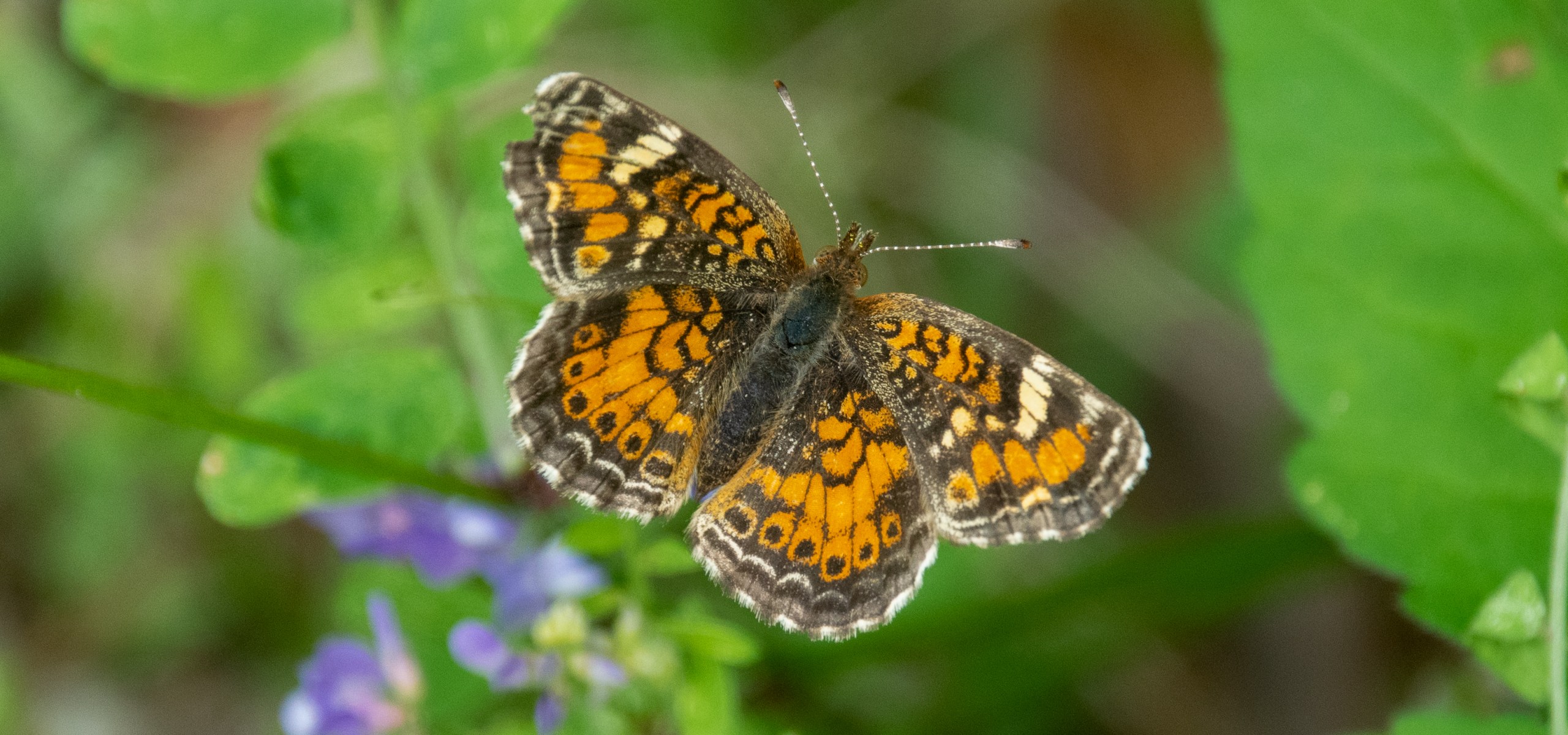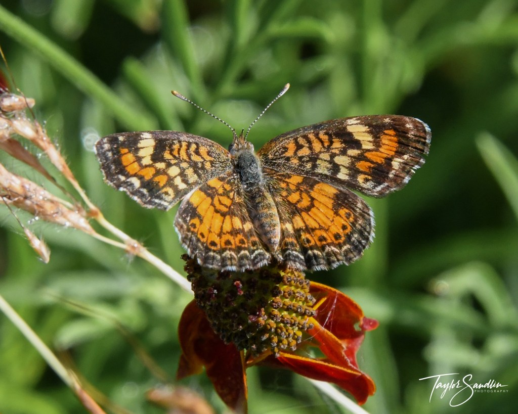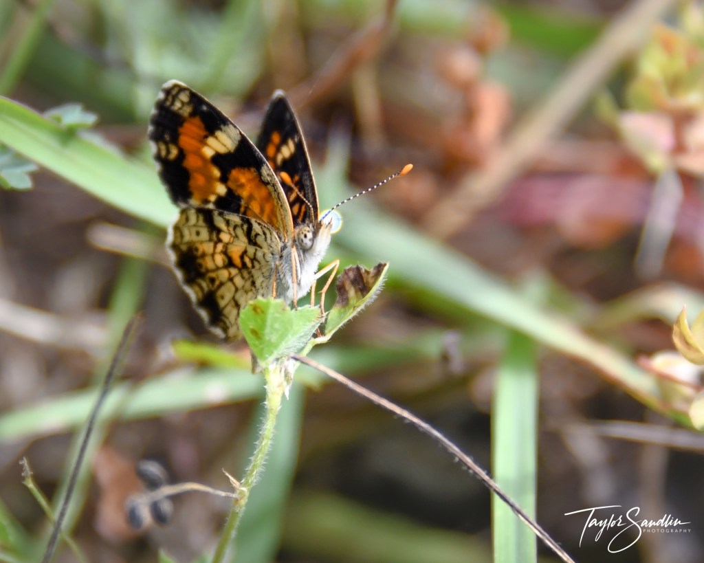 In the Houston area, I find the Phaon Crescent in fields, near marshes, and in prairie reclamation areas. It feeds upon small flowers like frogruit blossoms.