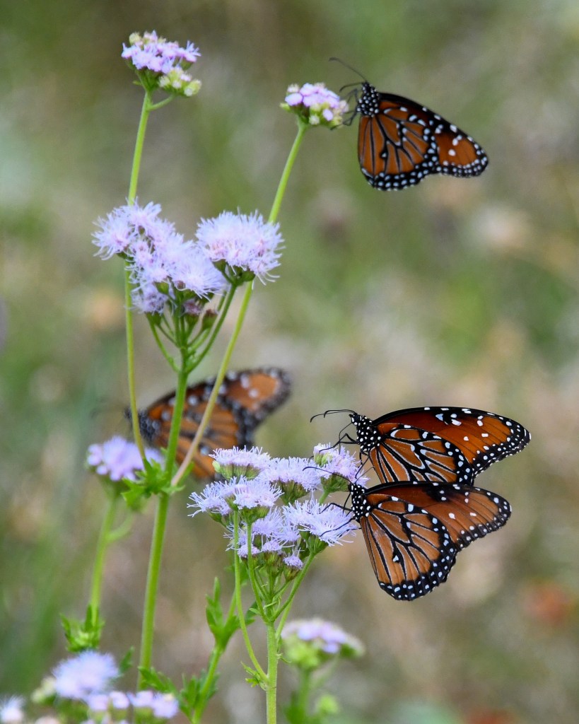 In a couple of hours I saw Monarchs, Queens, Painted Ladies, Gulf Fritillaries, Pearl Crescents, Cloudless Sulphurs, Long-tailed Skippers, American Snouts, Common Buckeyes, Little Yellows, Dainty Sulphurs, Common Checkered Skippers, Clouded Skippers, Fiery Skippers, and Sachems.
