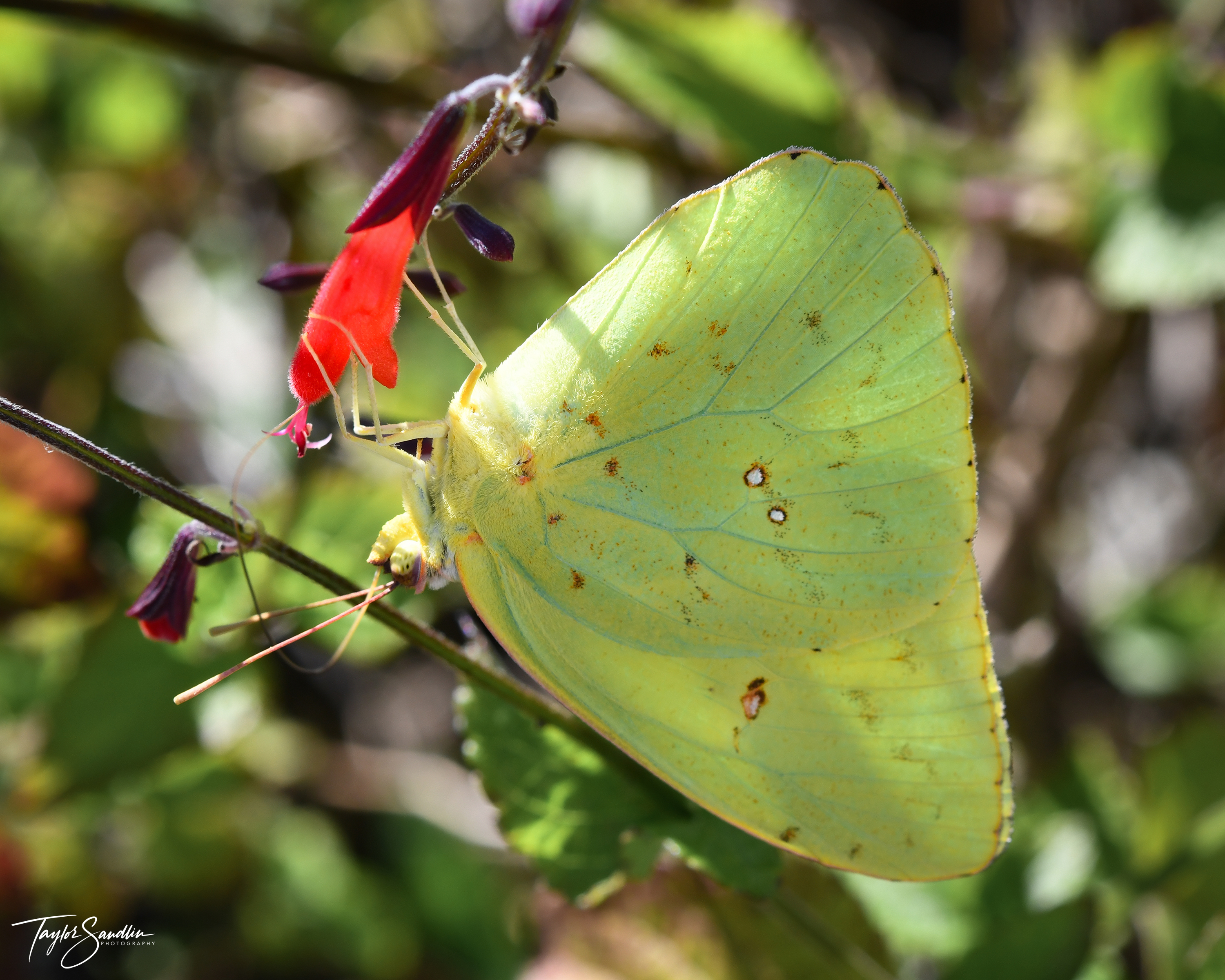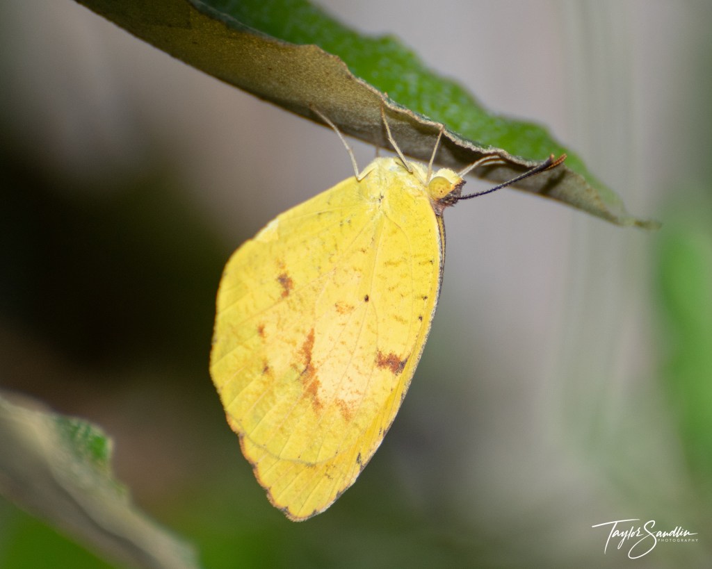 The Sleepy Orange is more yellow than orange and isn’t lazy from what I can tell. Some think it got its name from the small black marks on the upperside of its forewing. Apparently, some folks think it looks like a closed eye.