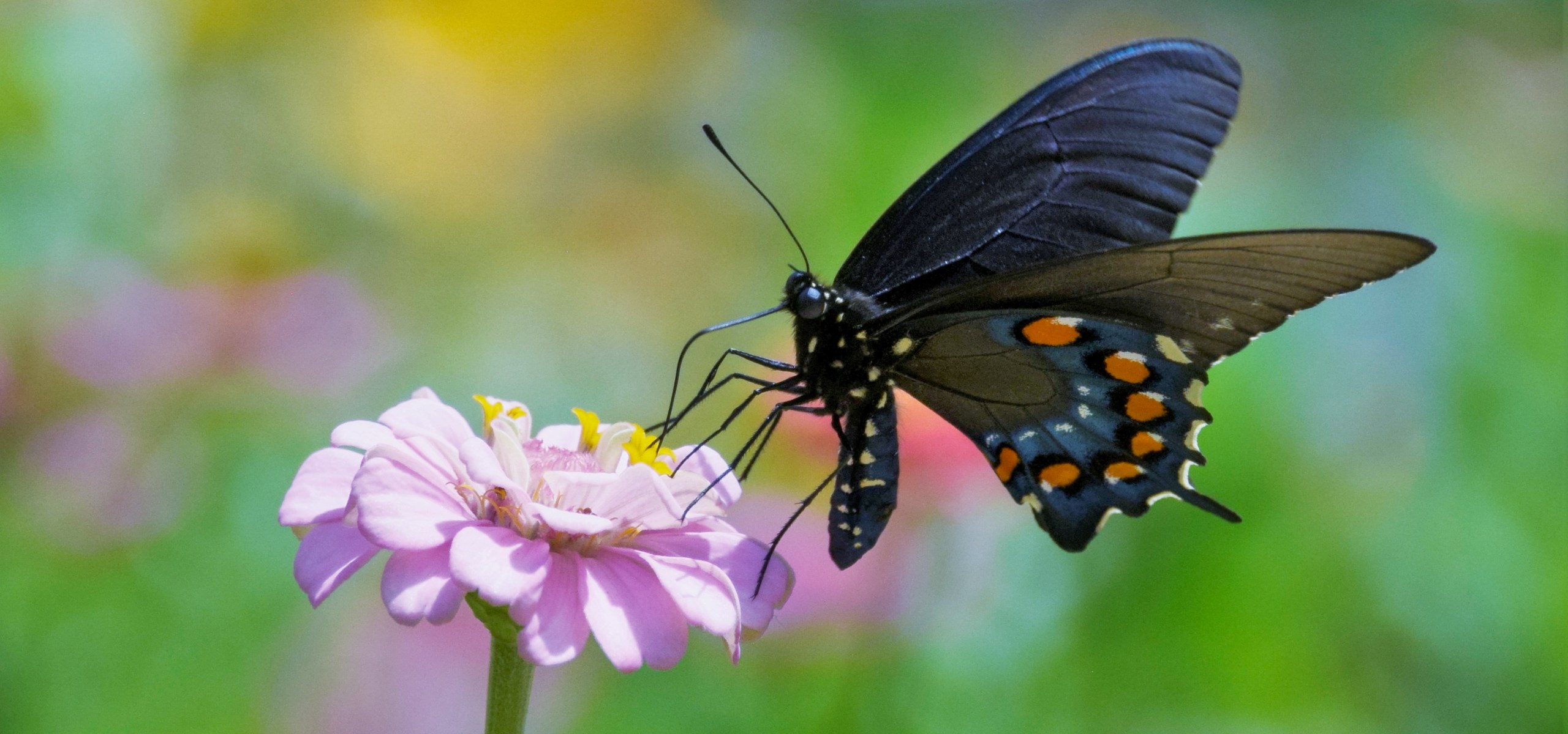 The Pipevine Swallowtail is abundant throughout Texas. It frequents gardens and can be found in flower fields and groves of trees. Its caterpillars feed on pipevine, a noxious plant which makes the butterflies taste bad to predators. Several other species mimic the Pipevine including the Spicebush and Black Swallowtails.